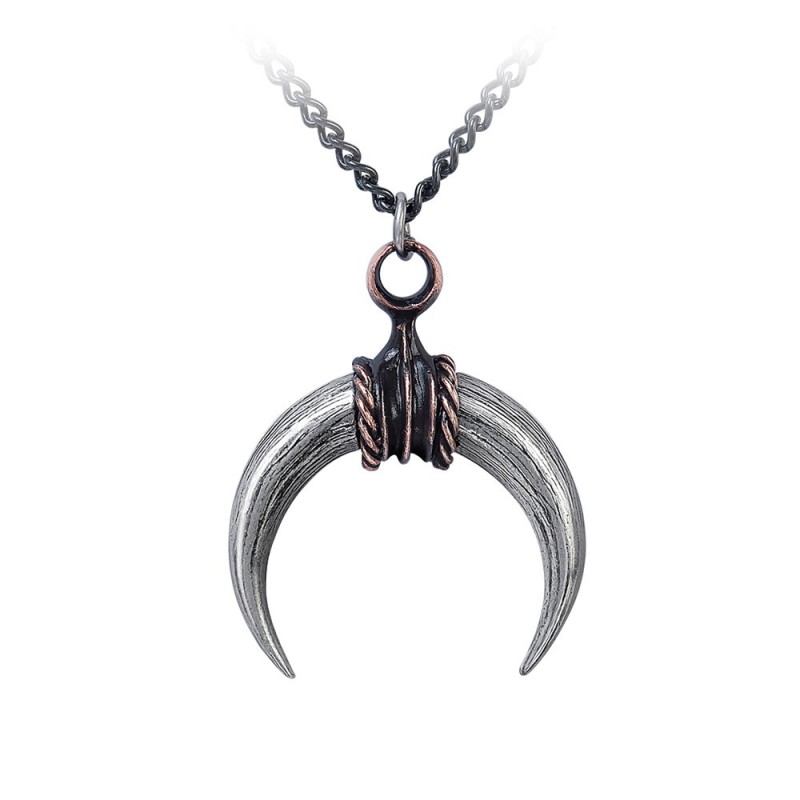 A 2" long pewter antiqued horns pendant, in the shape of a crescent moon, with a bronzed mount at its centre. ...