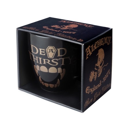 A beautiful rose gold edition mug decorated with the fun play on words slogan 'Dead Thirsty' and vampire teeth artwork! This mug is simply 'fangtastic' for the secret Vampires amongst us!