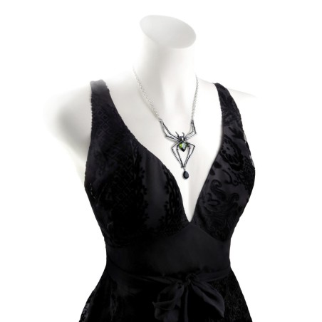 A giant pewter spider necklace set with green and black Austrian crystals. ...