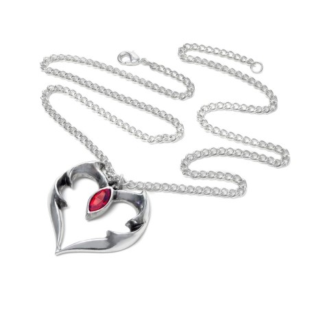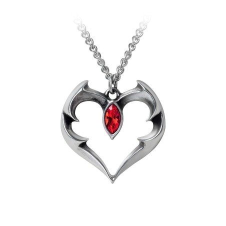 A 1 ¼" long pewter pendant heart -shaped outline formed of bat's wings, and set centrally with a red Austrian crystal. ...