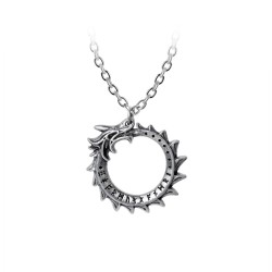 The Egyptian ankh, venerable symbol of eternity, is subsumed by the irresistible energy of the medieval dragon.