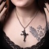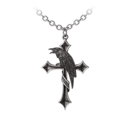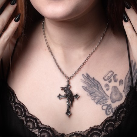 An antiqued pewter cross with a contrasting black raven perched upon it! Complete with antique silver colour chain.