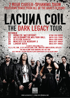 October 26th, 2012Lacuna Coil have been entertaining and inspiring crowds for 18 years now, since their formation in the city of Milan in 1994. The band were previously known as ‘Sleep of Right’ and then ‘Ethereal’ before settling on the name we all know so well Today, translated in English as Empty Spiral.