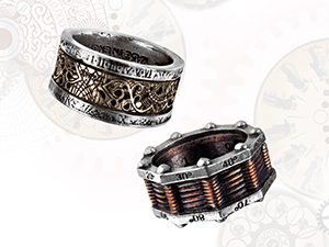 Get into the spirit of the original Frankenstein story with some of Alchemy’s key Victoriana pieces. Our Hi-Voltage Toric Generator Ring [R.149] is a replica of one of the parts to Ezekiel Empire Rosenstein’s incredible Galvanic Matter Transposition System. And Dr Von Rosenstein’s