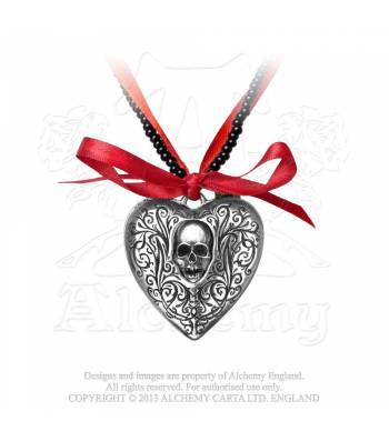 There are many links in the world between love and death. Alchemy Carter has made many jewellery pieces that celebrate the link between love and tragedy. Keep your loved one close to your heart using the Reliquary Heart Locket Necklace [P496] with its beautifully etched love poem and sensual beaded necklace. This paired with the Heart Ring [ULFR3] show your the potency of your love through delicate black and red enamel fills.
