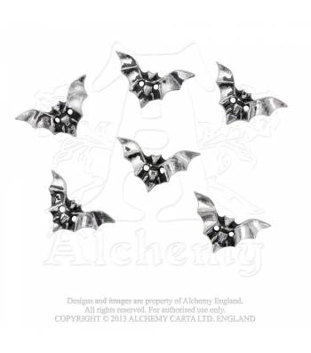 The sorrowful and bloodthirsty tales of Dracula and his victims has captured the imagination of Alchemy England to create a range of different Dracula inspired pieces. Quench your undying thirst with our Dracula’s Cup [CWT43], a tall intricately decorated piece of glassware with droplets of blood made from Swarovski crystals and red enamel base. For your personal attire there are a range of ravishingly elegant pieces to choose from including out Vamp Ring [R152] and and matching bangle [A76] made from cast pewter and inlayed with a red crystal blood drop. Wear Dracula close to your beating heart with our Blood Moon [P447] or Death of a Vampire [P495] pendants, and finish the entire look with our Bat Buttons [S4]. A more discreet accessory for any vampire lover.