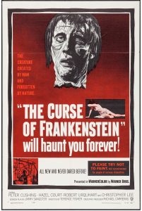 During the 1940s Universal studios gradually lost interest in Gothic horror, favouring the fad for atomic science fiction shockers in the ensuing decade. Hammer Films, a small British studio, picked up the Gothic torch, going into production on their own version of the Mary Shelley novel in late 1956, which debuted as THE CURSE OF FRANKENSTEIN the following year. It proved a big hit in the UK – though many British critics condemned the film for being too gruesome – one even feeling the need to ‘apologise to all decent Americans for sending them a work in such sickening bad taste.’ The apology fell on deaf ears, as audiences queued in even greater numbers to see THE CURSE OF FRANKENSTEIN Stateside. Hammer were now in the horror business. The film made international stars of the actors playing the Baron and his Creature – Peter Cushing and Christopher Lee. Lee was subsequently cast in the title role of Hammer’s DRACULA, with Cushing playing his nemesis Van Helsing. Lee (increasingly reluctantly) donned the Count’s cloak for Hammer another six times, while Cushing focused on perfecting his portrayal of Baron Frankenstein for a further five films. While Universal made the Monster the continuing character in their FRANKENSTEIN cycle, Hammer employed Cushing’s brilliant, ruthlessly driven scientist as the unifying factor in their adaptations. Opinion differs among Hammer connoisseurs about which is the best of the studio’s FRANKENSTIEN pictures, though many rate FRANKENSTEIN MUST BE DESTROYED as the finest in the series. Cushing’s ambitious Baron has now crossed the line between callous and actively cruel, his pathetic, reanimated cadavers as much his victims as the innocents who he butchers to create them, or those his monstrous creations kill.