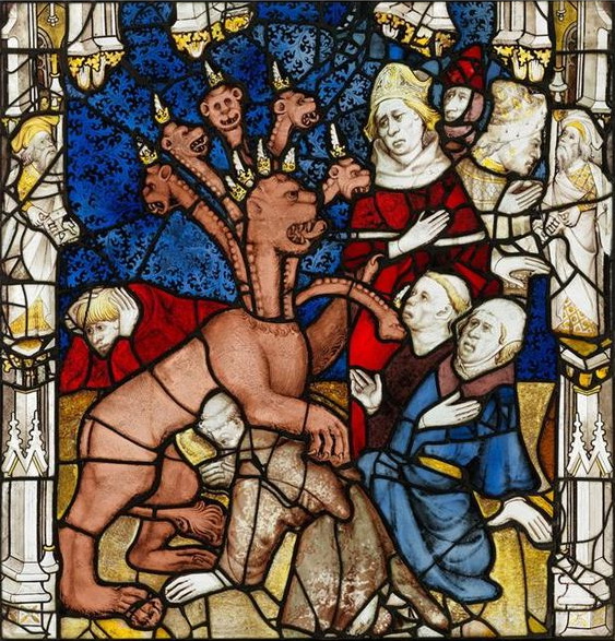 The Book of Revelation – the final book of the Bible – describes the coming end of the world. Written in the 1st Century AD, the author appeared to expect the Apocalypse to occur in their lifetime. Happily, they were disappointed, but Christians have remained fascinated by the subject ever since, with doomsayers keeping it alive by reinterpreting Revelation to refer to their own age, or creating their own version of the imminent End Times. During eras like the Middle Ages, when few people could read, such warnings needed to be communicated visually.