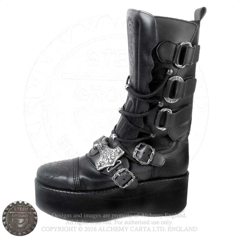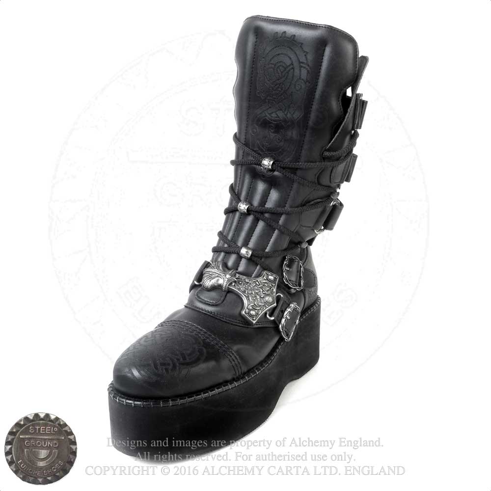 STB2The kind of awesomely imposing boots that a latter-day Jarl – leader of Viking war-band – might wear to impose his authority, whilst on his longboat’s coastal raid! Rock-steady, forceful boots imbued with the power of Thor and his mighty hammer, Mjolnir, incised with dragon knotwork and inscribed with Old Norse rune-magic – ‘Thunder & Lightning’.