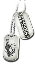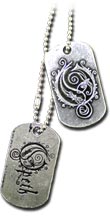 Dog tag sets are cast pewter (except where stated) and are supplied as a pair with details on reverse as indicated. On 27" & 4" ball chain.