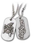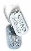 Dog tag sets are cast pewter (except where stated) and are supplied as a pair with details on reverse as indicated. On 27" & 4" ball chain.