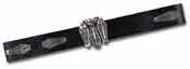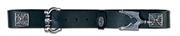 11/2" (38mm) Black leather belt straps, supplied without buckle. With double press studded ('snap fastener') end loop, for easy attachment of 1½" buckles. Available in three sizes.