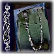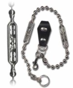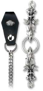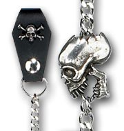 Strong 20" (508mm) Alchemy Gothic wallet chains incorporate two or three cast-pewter links, a split ring, trigger-clip and a black leather coffin belt loop.