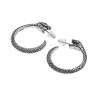 A pair of detailed, 1" (25mm) diameter pewter ear-hoops of a serpent with green Austrian crystal eyes, appearing to swallow their own tails when worn.